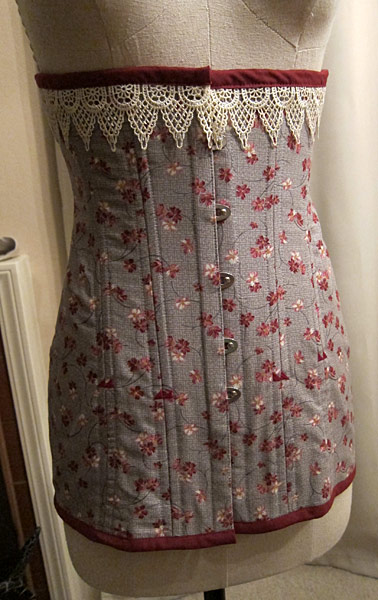 I started to do the design on the corset by hand and then realized I have this amazingly expensive embroidery machine sitting on my sewing table which would probably do a much better job than me. So after some wrangling with the digitizing software, in which I discovered that sometimes it won’t tell me if my design is too big for a hoop (wtf), I finally managed to get the design onto the machine and the results were pretty awesome.